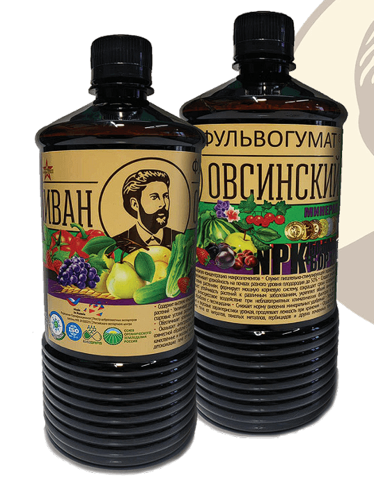 Жидкое низкомолекулярное комплексное гуминовое трёхкомпонентное NPK‑удобрение‑хелатор (гумат калия) повышенной усвояемости Содержание макроэлементов: - азот (N) - 150 г/л; - фосфор (P) - 50 г/л; - калий (K) - 50 г/л; - бор (B) - 10 г/л. Состав и особенности: - 6 % природных гуминовых кислот (экстрагированы из бурого угля -леонардита); - фульвовая кислота; - важнейшие питательные и укрепляющие элементы: - сера; - кальций; - магний; - железо; - марганец; - цинк; - медь; - молибден; - селен; - другие элементы; - сквален; - аминокислоты (треонин, метионин, лизин, цистеин и др.); - гуминовые цепочки измельчены на осколки молекул; - все элементы в хелатной форме; - уровень pH: 9–11 ед. Свойства: - нетоксичен; - не содержит хлора; - безвреден для человека, животных, птиц и пчёл; - не портится; - биоразлагаем. Область применения: - используется в любых баковых смесях; - подходит для протравливания и замачивания: - семян; - рассады; - саженцев; - применяется для корневой и некорневой подкормки любых растений; - эффективен в: - органическом сельскохозяйственном производстве; - садоводстве; - цветоводстве; - лесном и городском хозяйстве; - на приусадебных участках; - способствует повышению: - плодородия почв; - урожайности; - качества и чистоты урожая; - используется при рекультивации почв (связывает и выводит токсичные вещества).
